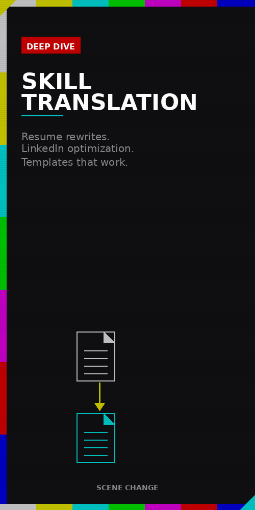 How to take your production resume and translate every bullet point into language corporate hiring managers actually recognize that you can actually talk about. Before-and-after examples. Role-specific templates. The exact process I used to go from "Production Manager, Big Brother Canada" to "Program Manager, Deloitte."
